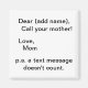 Mum's, got a son and or daughter going off to college? or out on their own to start their journey? or what ever the case may be? This would make a nice magnet for a gift for that son or daughter to remind them to call home, as it reads Dear___, call your mother! Love , Mum p.s. a text message does.t count. This message can be from anyone doesn't have to be just from mum it could be from any loved one. Just change name after call your___ and Love,___. However I would much rather take the time to put a meaningful word or expression for someone, at their request, than to have them settle on something I've chosen. I want it to be special for the customer and have meaning for them or to whomever they are gifting it to. If one of my pieces speaks to you, wonderful, but if there is something specific you want, let me know and I'll make it for you!" You can contact me by email through my store. MsLoriNY@aol.com