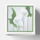 A graphic illustration of a Calla Lily Flowers on a party favour box. The favour boxes have a template for your personalisation. Original artwork: Copyright Charmaine Paulson