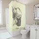 Two lovely calla lilies resting on a single leaf are the subject of the drawing done in charcoal pencil on a creamy yellow paper that embellishes this easy to personalise shower curtain. Light and shadow combine to accentuate the soft curves of these beautiful blossoms. The calla lily is also known as zantedeschia and in some areas it is used as an Easter lily.