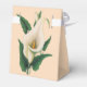 Peach tent-style with white ribbon favour box with a vintage image, on the front and back, of lovely calla lilies. See the entire Mother's Day Favour Box collection in the PARTY FAVORS section.