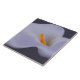 These decorative ceramic tiles feature an illustration of a calla lily with hints of pale purple and a centre of bright orange. Their is an effect of glitter throughout the image and a reflective golden glow on the petals near the stamen.