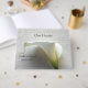 Choose a lovely white calla lily on an old-fashioned script background for a beautiful remembrance of your special day.