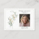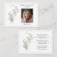 An elegant memorial photo funeral memorial prayer cards featuring white calla lilies and sage green eucalyptus leaves. You can customize with your chosen prayer, psalm or poem. The serene, natural aesthetic of eucalyptus leaves provides a calm and beautiful theme for funeral services. The white calla lilies represent beauty and innocence, while eucalyptus conveys healing, strength, and purification, making this combination popular for sympathy to offer peace.