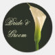 Cream coloured calla lily with elegant black background and Bride & Groom's name in light grey script font. Easily customise with your names - great for bridal showers, envelopes, napkins, gift bags, thank you notes and more.