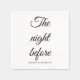 Get Yourself Some elegant and beautiful Decorated napkins for your Rehearsal Dinner. The napkins come in a calligraphy modern style with ~THE NIGHT BEFORE~ font. Also, you can customise the name of the bride and the groom. The napkins feature glitter with Eucalyptus and confetti to make them look so beautiful and elegant.