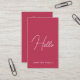 Custom Elegant Modern Design Chic Vertical Template Viva Magenta Colour Calligraphed Hello Business Card.
