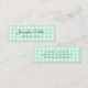 Calligraphed Template Elegant Mint Green White Min Mini Business Card