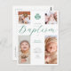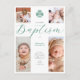 Create your own gorgeous Baptism | Christening photo collage invitations to invite your friends and family to welcoming of your little one in the Christian community! The elegant and minimalist design features a collage of four personalised photos placed to make a shape of the Christian cross in the middle and elegant typography in within with a ´´Baptism´´ header in a chic script and your baby´s name and details in elegant classic typography. There is a lovely botanical motif of a Celtic three leaf clover - shamrock, representing the Holy Trinity in an emerald green colour. Perfect for both: baby girl and baby boy. The three leaf clover repeats itself on the back on the simple white background. Make this beautiful invitation unique by replacing the text and images by clicking on the ´´Personalise´´ button. A beautiful keepsake to remember the special day!