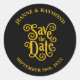 Calligraphy Black Gold Wedding Save the Date Classic Round Sticker