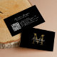 Calligraphy Black Metallic Gold Monogram QR Code Business Card