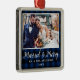 Modern Calligraphy Script, Rustic Blue Plaid Married and Merry Wedding Photo Ornament