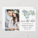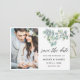 Modern Calligraphy Script, Elegant Watercolor Botanical Eucalyptus Leaves, Greenery Save The Date Engagement Announcement Couple Photo Card