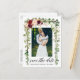 Modern Calligraphy Script, Watercolor Botanical Green Eucalyptus Leaves , Wood Frame, Watercolor Burgundy Marsala Floral, Save The Date Engagement Announcement Couple Photo Postcard