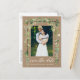 Modern Calligraphy Script, Watercolor Botanical Green Eucalyptus Leaves , Wood Frame, Kraft Save The Date Engagement Announcement Couple Photo Postcard