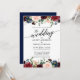 Calligraphy Burgundy Floral Blue Wedding Invitation