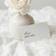 At the heart of these chic cards is a font duo that elegantly juxtaposes your first name in a modern script with your last name in a refined serif font. This typographic dance embodies a fusion of contemporary style and classic elegance, effortlessly conveying a blend of tradition and modernity.