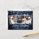 Calligraphy Christmas Blue Wood Lights 3 Photo Postcard