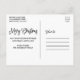 Modern Fun Calligraphy Script Merry Christmas 3 Photo Holiday Postcard - Rustic Country Blue Wood with String Lights