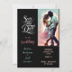 This wedding card features an elegant and romantic design, blending modern and classic elements. The main visual showcases a stylised silhouette of a couple dancing intimately, set against a soft, pastel-hued background that adds a dreamy atmosphere. The text is set in a combination of sophisticated calligraphy for the "Save the Date" heading, with swirling flourishes that evoke a sense of timeless elegance, and a clean, contemporary font for the wedding details below. The black background contrasts beautifully with the light colours of the couple's image, giving the card a striking and memorable appearance. This design is perfect for a couple looking to blend traditional romance with modern flair in their wedding stationery. The picture can be replaced with your own picture or photo. Personalise the text regarding the names and details of the wedding. You can download the card to your mobile device or computer. The design was made with the help of ai tech