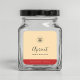 This product label featuring calligraphy script has fully editable colours. You can change the background colour and the bottom rectangle colour by clicking customise.