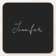 Calligraphy Elegant Black White Plain Simple Name Square Paper Coaster