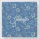 Calligraphy Elegant Blue Floral Custom Name Stone Coaster