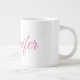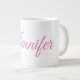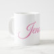Calligraphy Elegant Pink White Custom Name Large Coffee Mug