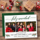 Calligraphy Feliz Navidad Red Holly 3 Photo Green Holiday Card