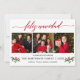 Calligraphy Feliz Navidad Red Holly 3 Photo Holiday Card