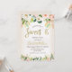 This bohemian sweet sixteen birthday invitation features some floral and feather arrangements. I've added some flowers in the lower half of the design as well in addition to some faux gold dots. The faux gold foil calligraphy sweet 16 heading is part of the image and can't be edited. More bohemian sweet 16 birthday invitations are available at the store. This girls bohemian floral 16th birthday invitation is ready to be personalized.