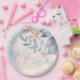 A handwritten, signature font combined with a modern sans serif is used in this floral stationery collection to set a warm and intimate tone for your wedding. The paper plate shown here features 'Mr & Mrs' calligraphy with your married names and wedding date on a background of lush flowers and foliage in shades from dusty blue to soft pink blush. Search ID771 to see other pieces and colour choices for this set.