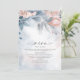 A handwritten, signature font combined with a modern sans serif is used in this floral stationery collection to set a warm and intimate tone for your wedding. The wedding dinner menu shown here features lush flowers and foliage in shades from dusty blue to soft pink blush against a background of dreamy watercolor paint splashes. Add your names, wedding date and menu selections using the provided template. Search ID771 to see other pieces and colour choices for this set.