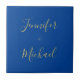 Calligraphy Gold Blue Colour Custom Personal Edit Ceramic Tile