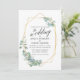 Modern Calligraphy Script, Elegant Watercolor Eucalyptus Greenery, Gold Geometric Frame Wedding Invitation Card