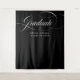 An elegant photo backdrop for a graduation party with "graduate" in elegant white calligraphic font on a black background. Personalise with your graduation details.
