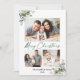 Modern Minimalist Elegance Calligraphy Ink Pen Handwritten Script Merry Christmas 3 Photo Holiday Card includes Elegant Watercolor Greenery & Eucalyptus Leaves. Green Script.