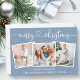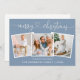 Modern Calligraphy Heart Script Merry Christmas 3 Photo Holiday Card - Dusty Blue Background