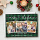 Calligraphy Heart Christmas Green Plaid 3 Photo Holiday Card