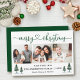 Modern Calligraphy Heart Script Merry Christmas 3 Photo Holiday Card includes Watercolor Pine Trees - Green Script
