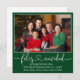 Modern Calligraphy Heart Script Family Photo Feliz Navidad Merry Christmas Card - Forest Green Background