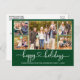 Modern Calligraphy Heart Script Happy Holidays 5 Photo Postcard - Green