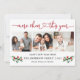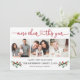 Modern Calligraphy Heart Script 3 Photo Family Photo Collage More Cheer This Year Holiday Card includes includes Watercolor Red Holly Berries - Red Script