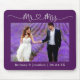 Modern Minimalist Simple Calligraphy Script Mr. and Mrs. Heart Wedding Bride and Groom Photo Mouse Pad - Purple