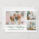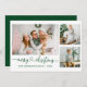 Modern Calligraphy Heart Script Merry Christmas 3 Photo Holiday Card - Green
