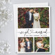 Modern Calligraphy Script Heart Minimalist Simple 3 Photo We Got Married Wedding Announcement Card
