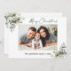 Modern Minimalist Elegance Calligraphy Ink Pen Handwritten Script Merry Christmas Photo Holiday Card includes Elegant Watercolor Greenery, Eucalyptus Leaves & Holly Berries. Green Script.