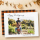 Modern Minimalist Elegance Calligraphy Ink Pen Handwritten Script Happy Thanksgiving Photo Holiday Card - Autumn Orange Buffalo Plaid Back