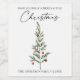 Calligraphy Ink Script Watercolor Christmas Tree Wine Label