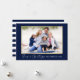 Modern Minimalist Elegance Calligraphy Ink Pen Handwritten Script Seas & Greetings Photo Gold Frame Holiday Card - Navy Blue & White Stripes