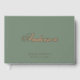 This personalised elegant wedding guest book in dark sage green - features the couple's new last name front and centre on the cover in beautiful calligraphy foil text. All text elements, including custom text on the spine, can be customised. Need to change the colour of this wedding guest book? Use the design tool to change the background colour to any colour you want.